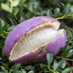 La liane chocolat ou vigne à cinq feuilles, également connue sous le nom d'Akébia quinata, est une plante grimpante originaire d'Asie de l'Est, principalement de Chine, du Japon et de Corée. Le feuillage délicat de cette liane vigoureuse et originale attire l'attention grâce à ses fleurs parfumées et ses fruits surprenants. Les fleurs et les fruits jouent un rôle essentiel en attirant des pollinisateurs comme les abeilles, les papillons, et divers oiseaux ce qui favorise la biodiversité. La pulpe douce de son fruit peut être consommée crue ou utilisée dans des desserts comme les sorbets ou les confitures. Les coques, quant à elles, sont parfois utilisées en cuisine asiatique, farcies ou sautées. Ses fruits s'ouvrent à maturité pour donner naissance à une pulpe blanche, douce et sucrée, abritant de nombreuses petites graines. Ils sont délicieux et savoureux, rappelant un mélange de melon et de litchi. La fructification nécessite parfois une pollinisation croisée avec une autre plante d’Akébia quinata. À la fois esthétique, odorante et riche en fruits, cette plante ajoute une note unique à tous les jardins. Sa culture est simple et elle fait preuve d'une grande résistance, ce qui la rend idéale tant pour les jardiniers novices que pour les experts. C'est un choix idéal pour combiner beauté et l'abondance dans votre jardin !